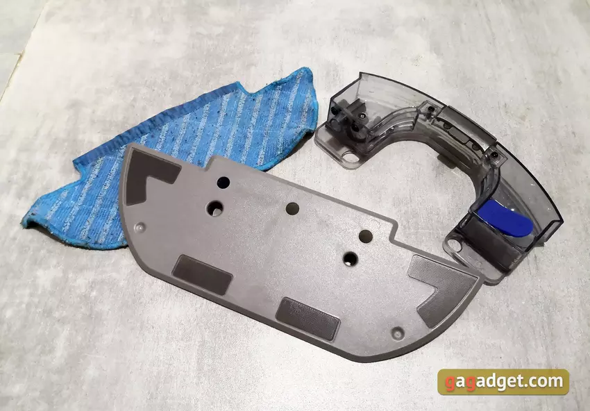 Ta podkładka jest również usuwana ze zbiornika na wodę. Sam zbiornik jest przezroczysty, z gumowym zaworem w górnej części do napełniania wodą. Producent zaleca wylewanie pozostałości wody po każdym czyszczeniu.