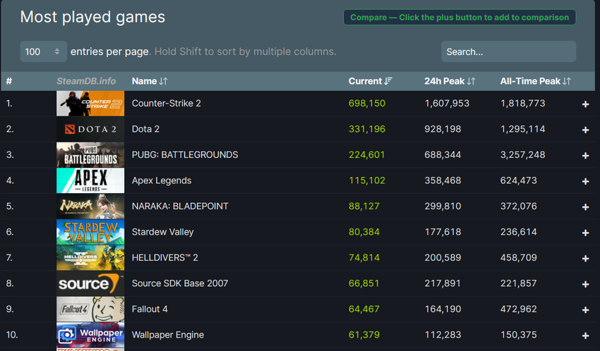 Co najmniej 100 tysięcy osób gra w Fallout 4 każdego dnia. 21 kwietnia w grę grało 164 tysiące osób. Dzięki temu gra niemal zawsze znajduje się w pierwszej dziesiątce najpopularniejszych tytułów na Steam.