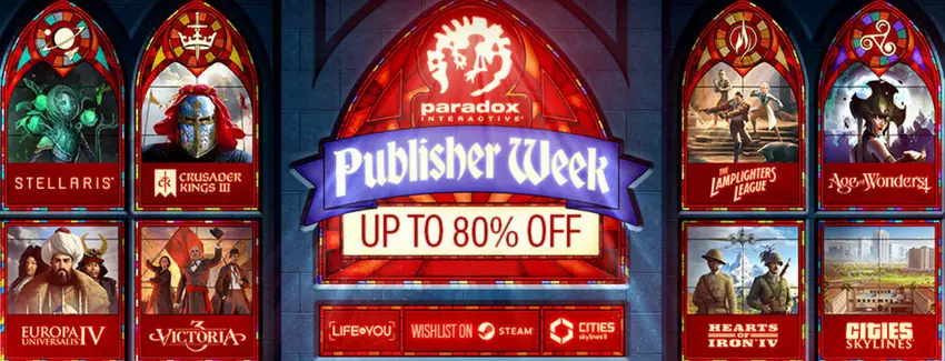 Przede wszystkim akcją zainteresowani będą fani wielkich gier strategicznych, ponieważ zniżki sięgające 80% dotyczą takich franczyz jak Crusader Kings, Cities: Skylines, Victoria, Hearts of Iron, Europa Universalis i Stellaris. Oferta obejmuje również wiele dodatków do gier.