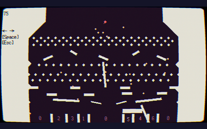 Jeśli lubisz styl retro, docenisz oprawę wizualną gry. Warto zauważyć, że można włączyć efekt przypominający stare wypukłe telewizory, co potęguje atmosferę STONKS-9800. Amy (oczywiście), bar i maszyna do patynowania są narysowane w bardzo fajny sposób. Jeśli nie grałeś w gry pikselowe, przyzwyczaisz się do obrazu w ciągu kilku minut. Jeśli nadal jest trudny w odbiorze, polecam wyłączyć "efekt wypukłości", aby obraz stał się bardziej znajomy dla brzęczącego oka. Gra ma również tak minimalne wymagania systemowe, że uruchomi się nawet na komputerze, który ma ziemniaka zamiast karty graficznej.
