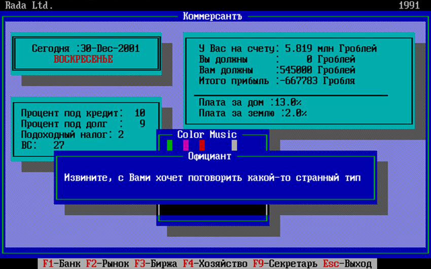 Grą, którą inspirował się przy wdrażaniu swojego pomysłu, była inna ukraińska gra - Kommersant to ekonomiczna gra strategiczna opracowana i wydana przez kijowską firmę Rada Ltd. jesienią 1991 roku. Rusłan poznał tę grę na przełomie lat 90. i 2000. i polubił ją. W grze trzeba było handlować ziemią i ropą naftową, nie było akcji, ale można było utknąć na cały dzień.