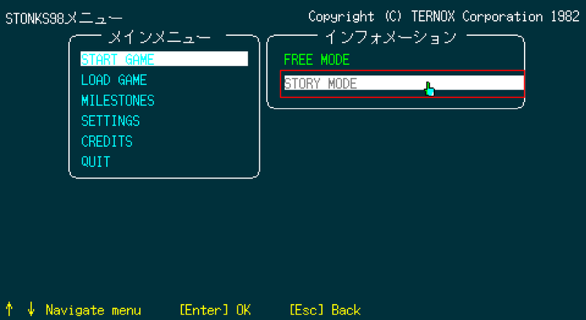 Tak więc, STONKS-9800 jest ósmą grą dewelopera, która pojawiła się na Steam. Jak widać, nie jest to pierwsza gra w japońskim stylu w portfolio Ternox. Autor ma na to proste wytłumaczenie: Ruslan często przyglądał się starym grom, które powstały na japońskie komputery PC-9800. Zawsze podobał mu się ich wygląd. Jednocześnie studiował, jak te gry były tworzone. A kiedy natknął się na historie o japońskiej giełdzie, zdał sobie sprawę, że to wszystko jest bardzo interesujące i dlatego nadszedł czas, aby zrobić o tym grę.