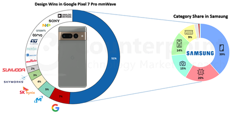 Ponad połowa komponentów we flagowym smartfonie Google Pixel 7 Pro została wykonana przez południowokoreańskiego producenta Samsunga. Tak wynika z danych agencji analitycznej Counterpoint Research.