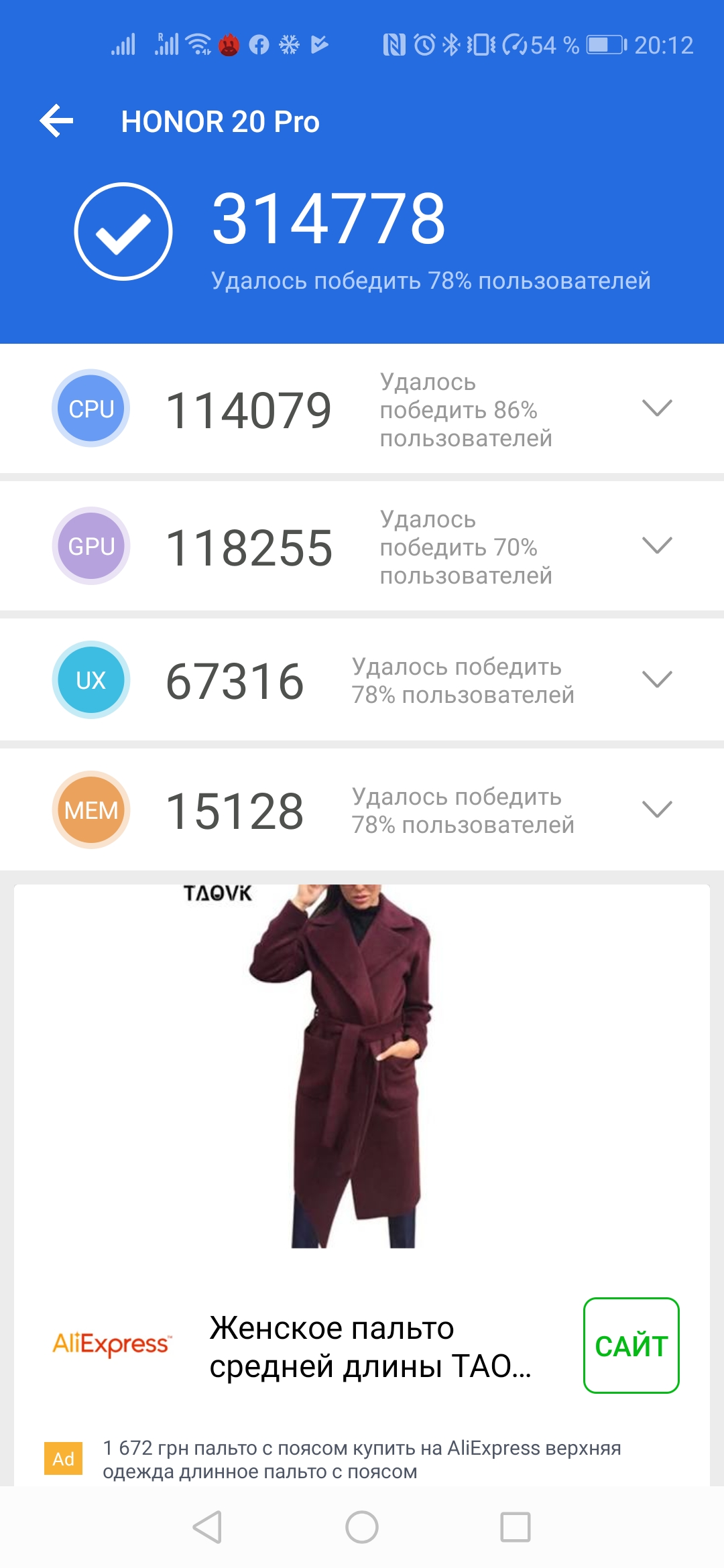 Model jest wyposażony w procesor Kirin 980 i 8 GB pamięci RAM. To nawet więcej niż Huawei Mate 20 Pro, który był w naszej recenzji i byłam pod wrażeniem od jego wydajności. Jest to ośmiordzeniowy procesor o architekturze big.LITTLE (4 rdzenie Cortex-A55, 1,8 GHz, 2 rdzenie Cortex-A76, 2,6 GHz i 2 rdzenie Cortex-A76 1,92 GHz) oraz obsługa GPU Turbo 3.0. Obecnie wydajność urządzenia jest nadal zbyt wysoka dla większości użytkowników, i ma dobre podstawy na przyszłość. W teście Honor 20 Pro pokazuje wyniki na poziomie zeszłorocznych flagowców. W moim życiu miałem około 80 aplikacji, jeśli policzysz wszystko na liście ustawień, interfejs działał bez opóźnień. Asphalt 9 i Shadow Fight 3 poszły gładko