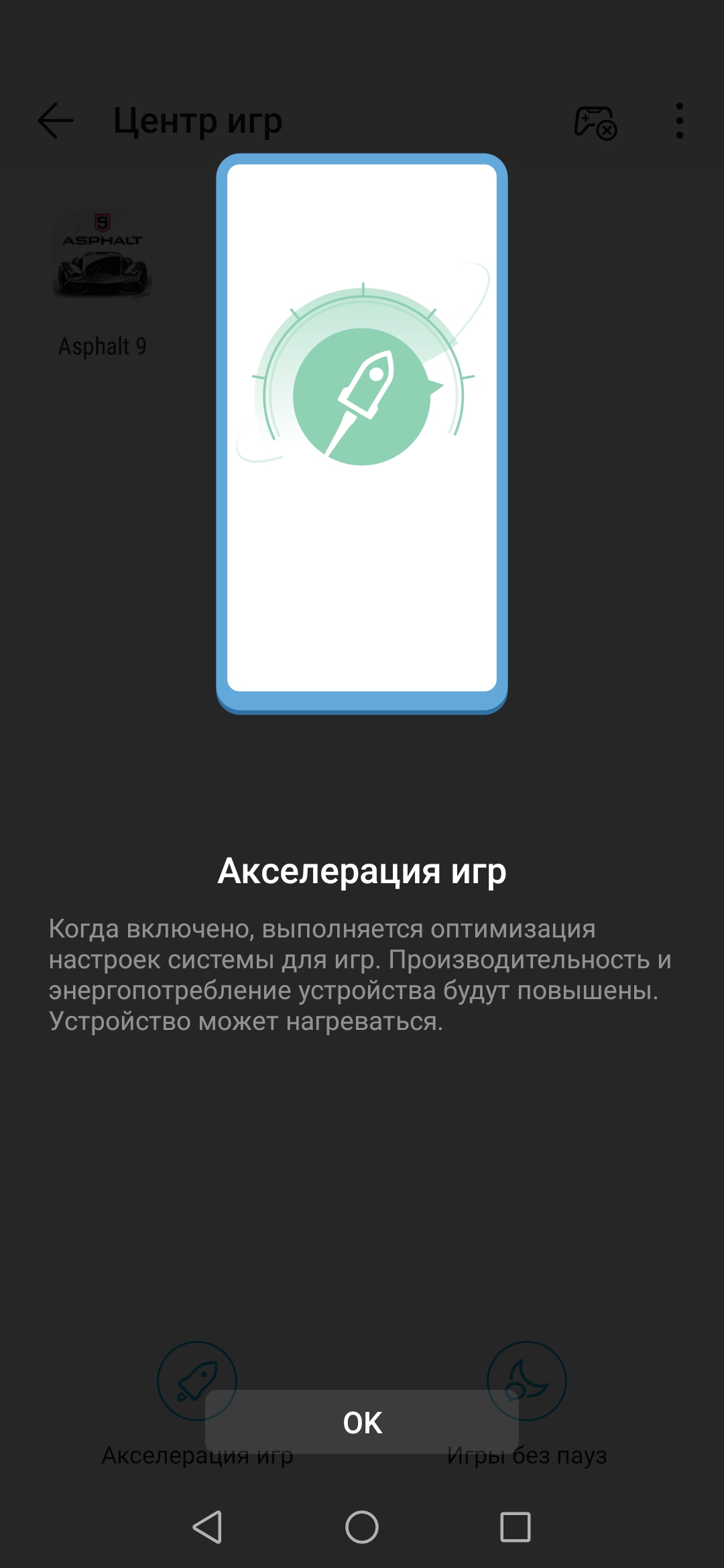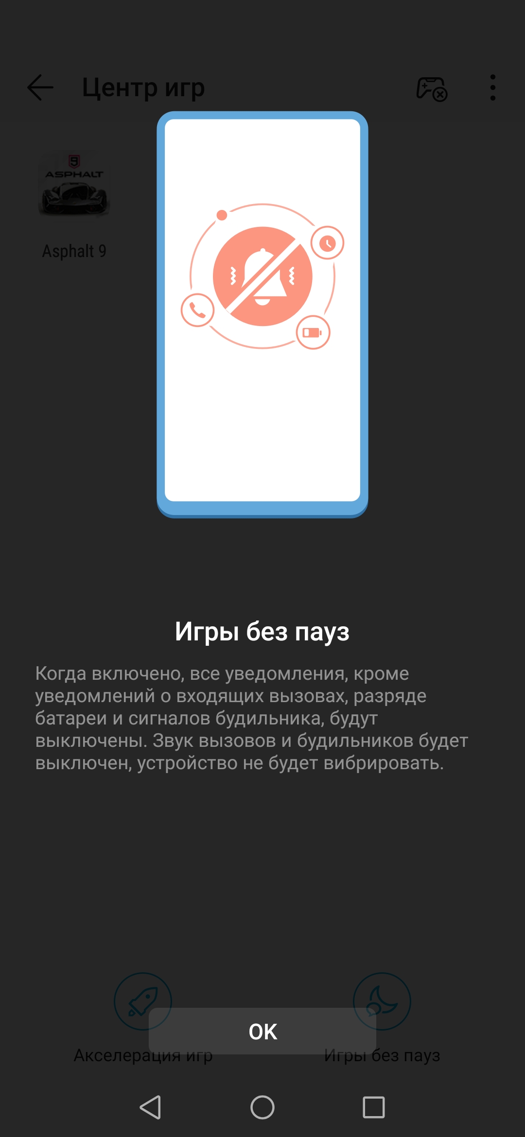 W ustawieniach jest osobna sekcja dla graczy - centrum gier. Tutaj możesz aktywować tryb „grać bez przerw”, aby powiadomienia nie zakłócały procesu, włączyć przyspieszanie gier (zwiększy zużycie energii i wydajność) lub konfigurować uruchamianie określonej gry po podłączeniu akcesorium do gry.