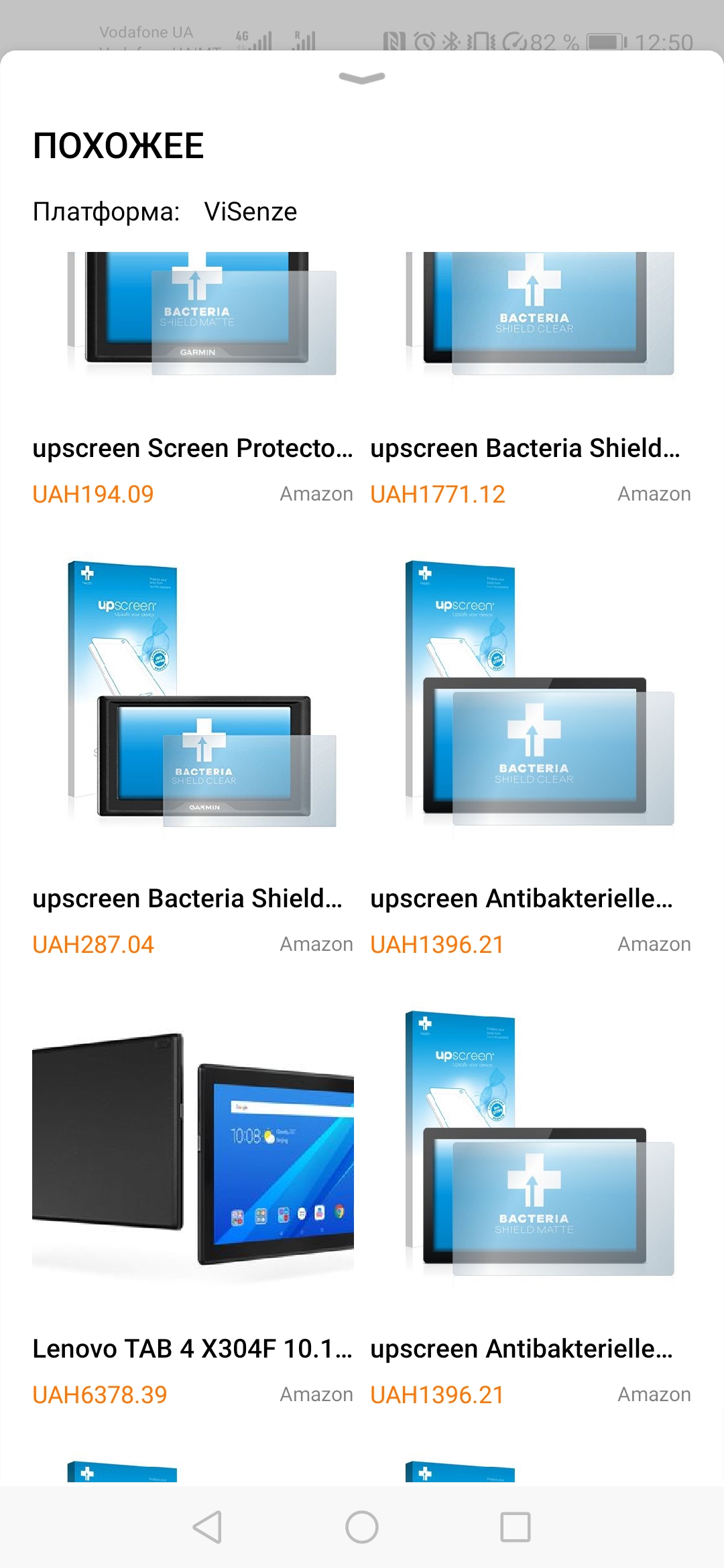 Lub na przykład inteligentna funkcja HiTouch korzystająca z platformy ViSense może wyszukiwać produkty według obrazu w różnych sklepach internetowych. Coprawda głównie na Amazon. Na liście opcji nie znalazłem ukraińskiego. Ponadto dokładność wyszukiwania jest niska - na przykład, nawet jeśli szukasz w pełni rozpoznawalnego modelu smartfona lub ubrania o określonych cechach, będą one oferować ze zdalnie podobnych opcji.