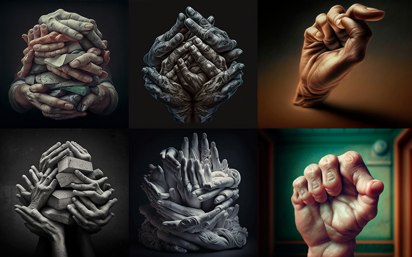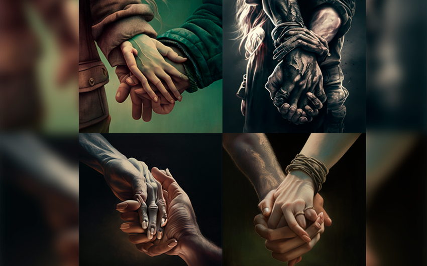 Sytuacja staje się jeszcze bardziej skomplikowana, gdy na jednym obrazie tworzymy kilka dłoni, na przykład dwie osoby trzymające się za ręce lub grupę przyjaciół w uścisku. A każda ręka musi być narysowana dokładnie, inaczej cały obraz nie będzie taki, jaki powinien być. Najczęściej ręce AI wyglądają dziwnie, bo są "przeładowane" na zdjęciu.