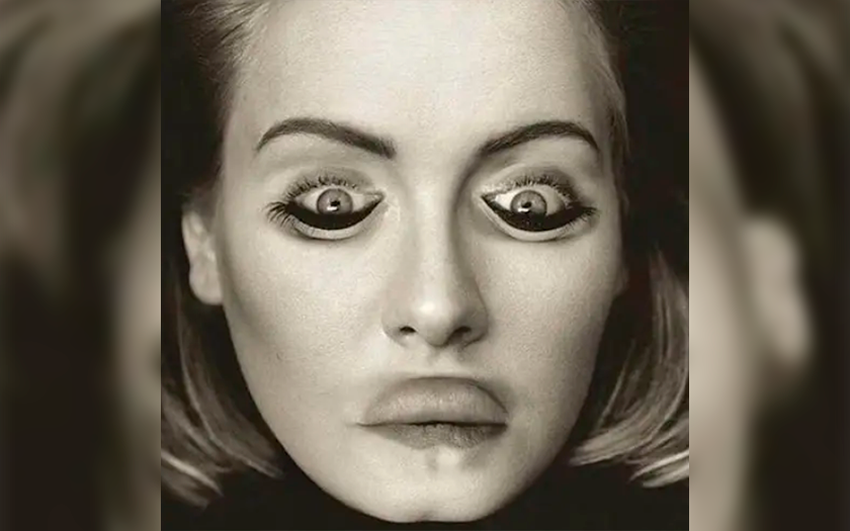A ostatni przykład wiąże się z tym, że psychologicznie jesteśmy skłonni szukać błędów u ludzi na rękach, a nie na twarzach. Aby lepiej zrozumieć, o czym mówimy, musimy przyjrzeć się odwróconemu obrazowi twarzy Adele: