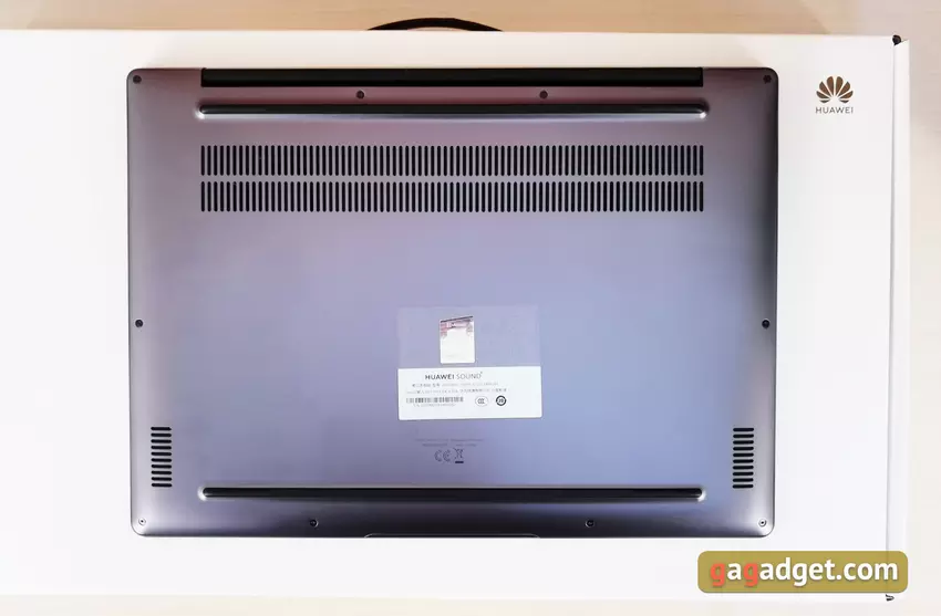 Obudowa Huawei MateBook 14s jest w całości wykonana z anodowanego aluminium. Wydaje się, że metal jest dość gruby: panele praktycznie się nie wyginają. Wygląd jest typowy dla nowoczesnych, drogich ultrabooków: minimalizm, kompaktowy rozmiar i minimalna grubość. Z elementów ozdobnych widnieje się tylko napis Huawei na górnej pokrywie. Wybrano również sprawdzony przez lata kolor: „gwiezdna szarość”, choć istnieje bardziej oryginalna zielona wersja.