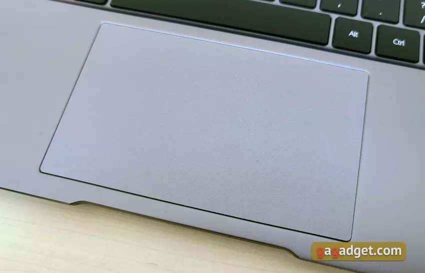 Przyciski wykonane są z matowego czarnego plastiku. Pomimo kompaktowych rozmiarów i niewielkiej grubości laptopa, skok przycisków wynosi 1,5 mm. Jest umiarkowanie miękki, ale informacyjny. Jest białe podświetlenie z dwoma poziomami jasności. Nie jest zbyt jasno i w rzeczywistości doświetla większą przestrzeń między przyciskami, więc w ciemności nie będzie z tego większego sensu i wygody przy pracy.