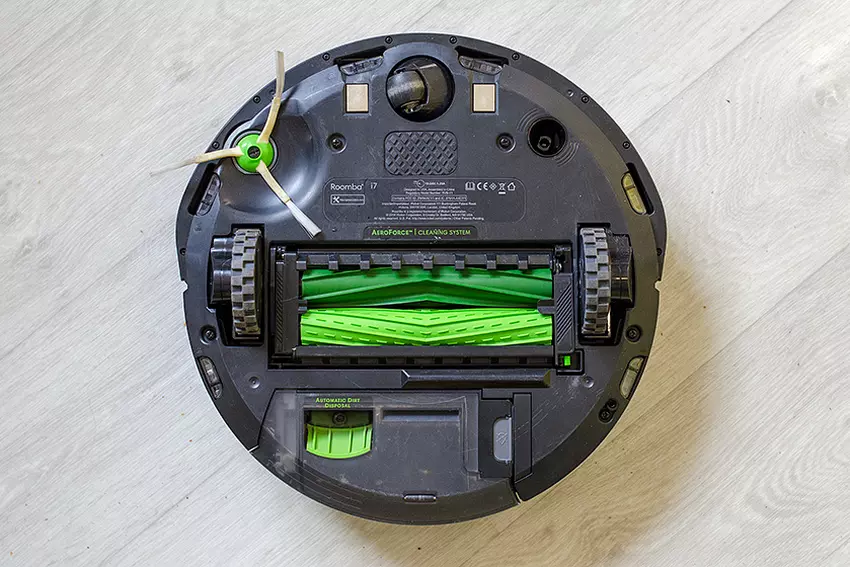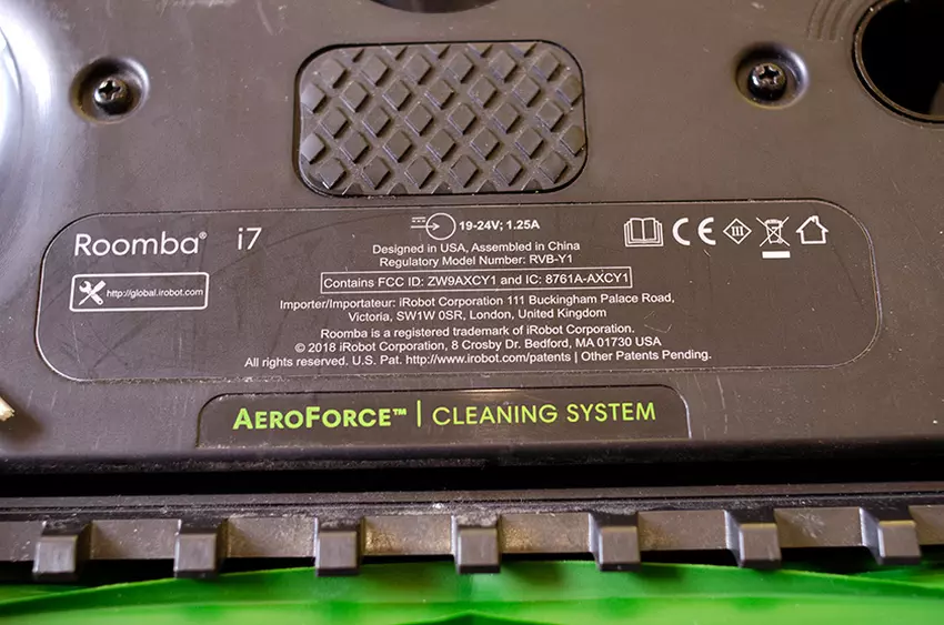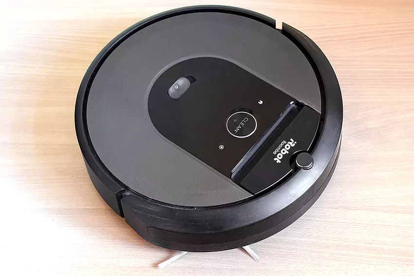 Kształt robota Roomba i7 jest klasyczny dla robotów odkurzających - okrągły „zmywak” o średnicy 33 cm i wysokości 7,5 cm. Przednia (w kierunku jazdy) połowa ciała jest otoczona potężnym zderzakiem z wbudowanymi czujnikami podczerwieni i mechanicznymi wykrywającymi przeszkody. Na przednim zderzaku znajduje się kolejny czujnik, który wykrywa wysokość przestrzeni przed odkurzaczem. Dzięki niemu robot decyduje, czy na przykład bezpiecznie jest wjeżdżać pod łóżko, czy też istnieje ryzyko utknięcia. Panel górny jest solidny, nic się w nim nie otwiera, w przedniej części umieszczono trzy przyciski - jeden dla głównej funkcji „CZYSZCZENIE” (usuń / wyczyść) z pierścieniowym wielokolorowym wskaźnikiem. Pozostałe dwa służą do powrotu do bazy i intensywnego czyszczenia punktowego. Obok nich znajduje się uchwyt do przenoszenia odkurzacza. Wbudowana kamera spogląda do przodu i do góry, dzięki czemu odkurzacz tworzy wizualny obraz pomieszczenia, co ułatwia mu nawigację. Z tyłu odkurzacza znajduje się wyjmowany kosz na śmieci z przyciskiem do jego wyjmowania.