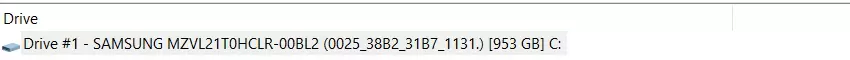 Dysk to szybki SSD Samsung PM9A1 M.2 NVMe PCIe Gen4 x4 o pojemności 1 TB. Laptop ma jeszcze jedno gniazdo M.2 na dodatkowy dysk SSD.