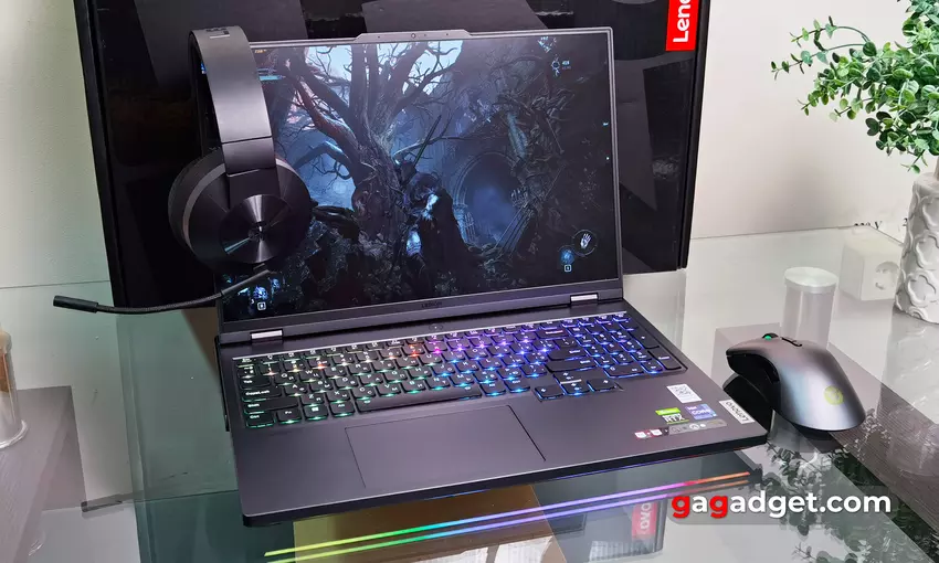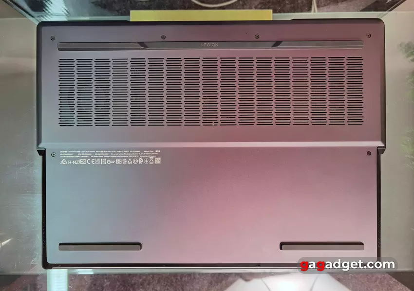 Lenovo Legion Pro 7 jest dobrze zmontowany z wysokiej jakości materiałów, panele prawie się nie wyginają. Trudno nazwać tego laptopa gigantem: 363.4x262,1x25,9 mm, ale waga 2,8 kg nie jest zbyt wygodna w codziennym transporcie. Ale ten laptop jest nadal pozycjonowany bardziej jako zamiennik komputera stacjonarnego, więc jest to całkiem normalne.
