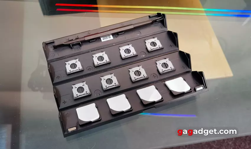 Opcjonalnie nakładki na klawisze WASD można wymienić na dodatkowe białe z powłoką przypominającą ceramikę. Zestaw zawiera niezbędne narzędzia i 8 dodatkowych przełączników.