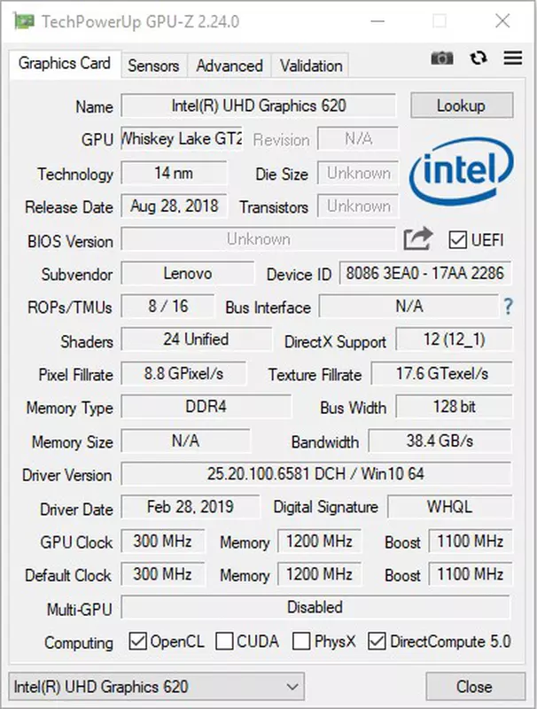 grafika Intel Graphics 620 UHD