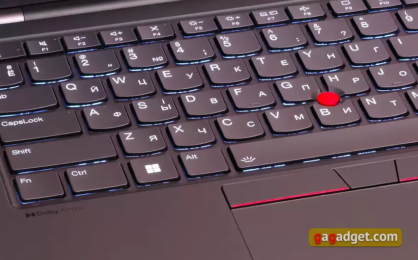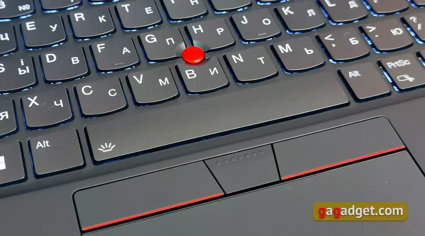 Pomiędzy przyciskami G, H i B znajduje się trackpoint, tradycyjny dla linii ThinkPad, który jest używany od dziesięcioleci.