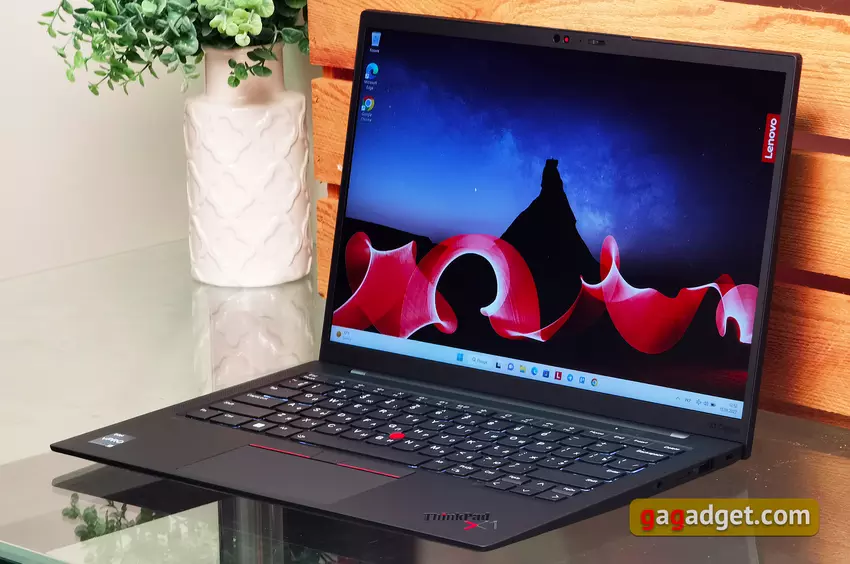 Klawiatura jest lekko zagłębiona w powierzchni roboczej. Po bokach znajdują się głośniki, chociaż nie wpłynęło to na układ, jest to absolutnie standardowe dla linii Lenovo ThinkPad X1 Carbon, więc wszystko będzie znane koneserom. A dla tych, którzy właśnie zdecydowali się przejść na ThinkPada, będzie kilka rzeczy do przyzwyczajenia. Na końcu górnego rzędu znajdują się osobne przyciski Home, End i Delete, blok strzałek jest lekko przesunięty w stronę użytkownika, a przyciski PgUp i PgDn są umieszczone po bokach strzałki w górę. PrtSc znajduje się pomiędzy prawymi przyciskami Alt i Ctrl. I tradycyjna funkcja: Fn i lewy Ctrl zostały zamienione miejscami. Można to jednak skonfigurować w aplikacji Lenovo Vantage.