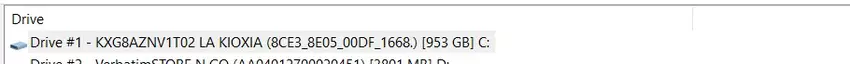 Zastosowany dysk to 1 TB XG8 SSD firmy KIOXIA (dawniej Toshiba Memory) z interfejsem PCI-E 4.0 4x. Deklarowana prędkość odczytu wynosi do 7000 MB/s, a zapisu do 5600 MB/s.