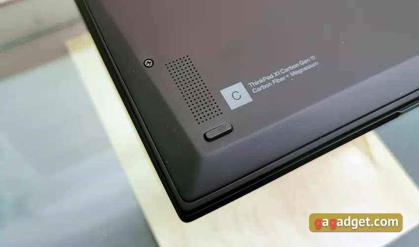 Model Lenovo ThinkPad X1 Carbon historycznie był bardzo udany i doczekał się już 11. generacji. Przez ten czas nie zaszły żadne większe zmiany w designie czy konstrukcji. Owszem, niektóre elementy uległy zmianie, ale ogólnie wygląd pozostaje znajomy i rozpoznawalny. Dotyczy to generalnie całej biznesowej linii ThinkPadów: minimalistyczny i praktyczny kształt, czarny kolor, czerwone akcenty i znany z czasów IBM czerwony trackpoint na klawiaturze. Klawiatura zajmuje niemal całą szerokość powierzchni roboczej. Nie przeszkodziło to jednak w umieszczeniu głośników po jej bokach.