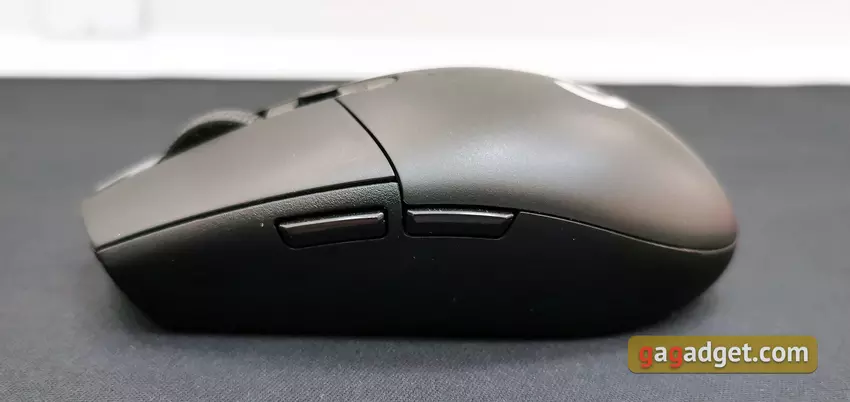 Główne przyciski są oddzielone od obudowy i mają prawie identyczny kształt i rozmiar. Logitech tradycyjnie używa wykończenia sprężynowego, dzięki czemu są one doskonale zamocowane i nie zwisają. Rolka przewijania jest szeroka, z żebrowaną gumowaną powłoką. W stosunkowo niewielkiej odległości od koła znajduje się przycisk do przełączania trybu DPI: