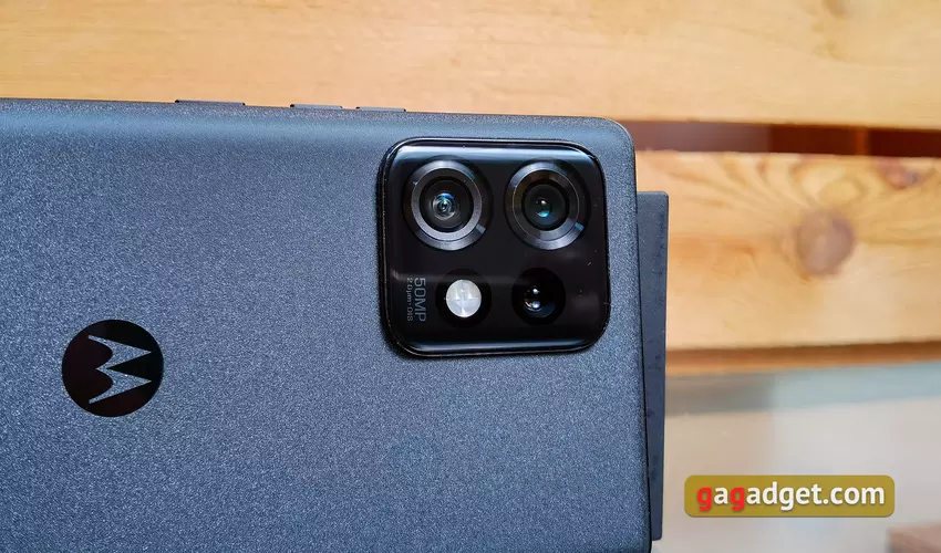 Trudno jest sprawić, by przedni panel nowoczesnego smartfona wyglądał oryginalnie. Ale eksperymenty są możliwe z tylnym panelem. W Motoroli Edge 40 Pro jest on wykonany z matowego szkła, ale ma nietypowe wykończenie. Jest przyjemny i jedwabisty w dotyku, a pod pewnymi kątami nieco się błyszczy. Jeśli chodzi o praktyczną stronę rzeczy, są zarówno plusy, jak i minusy. Matowe szkło w ogóle nie zbiera odcisków palców, a pokrywa nie traci estetycznego wyglądu. Powłoka jest jednak nieco śliska.