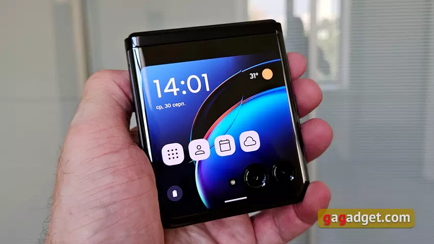 Mówiąc o innych przypadkach użycia, można nie trzymać smartfona, ale położyć go na stole i przewijać jakość kanału informacyjnego lub mediów społecznościowych. Lub czytać książkę w podobnej pozycji. Jednak do takich zastosowań ciekawiej wyglądają smartfony z elastycznymi ekranami, które po rozłożeniu zamieniają się w coś podobnego do tabletu. Biorąc pod uwagę rozmiar wewnętrznego wyświetlacza Motoroli Razr 40 Ultra, nadal wygodniej jest używać go do surfowania po Internecie, komunikatorów, gier i nie tylko w formacie zwykłego smartfona.