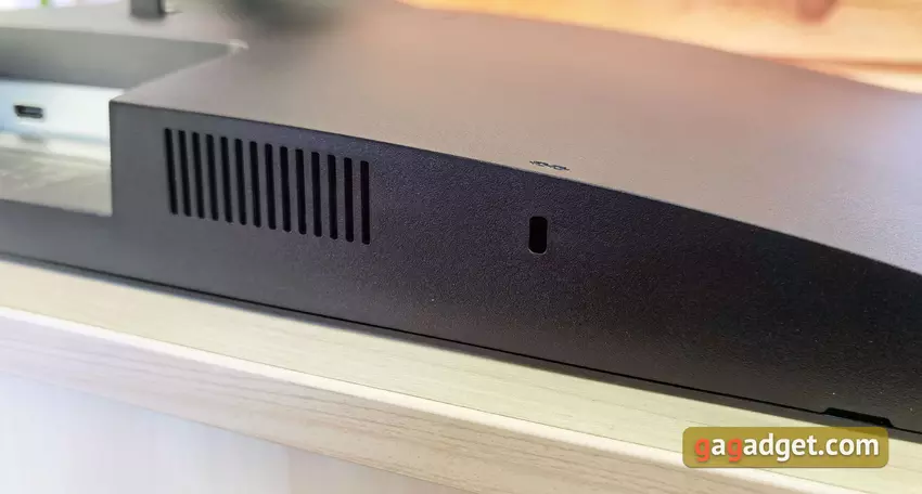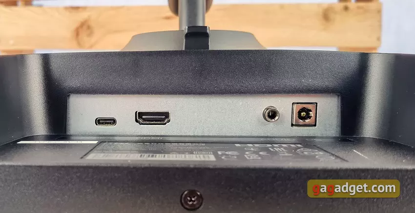 Nie ma tak wielu złączy, chociaż nie jest to krytyczne dla monitora biurowego. 1xHDMI 1.4, 1xType-C (z obsługą DisplayPort), gniazdo słuchawkowe i gniazdo zasilania: