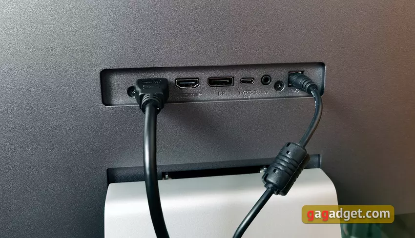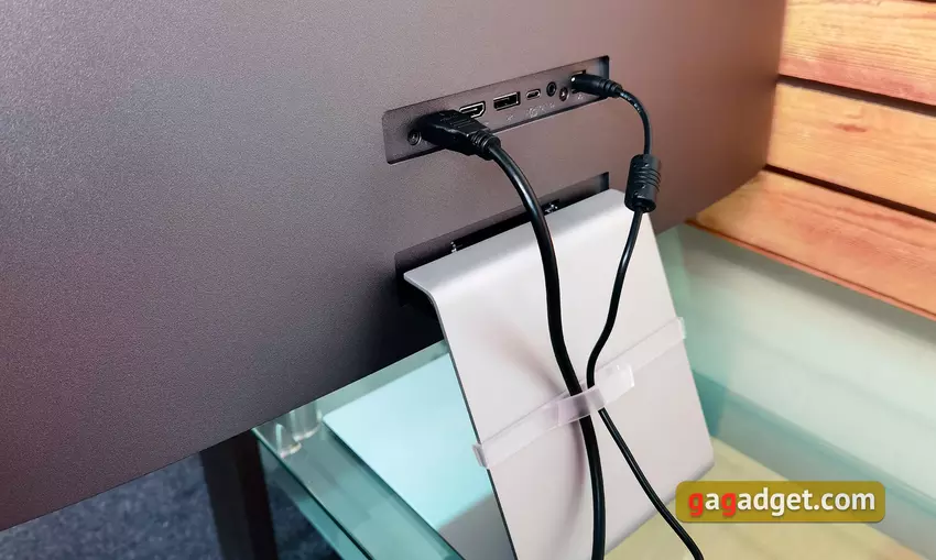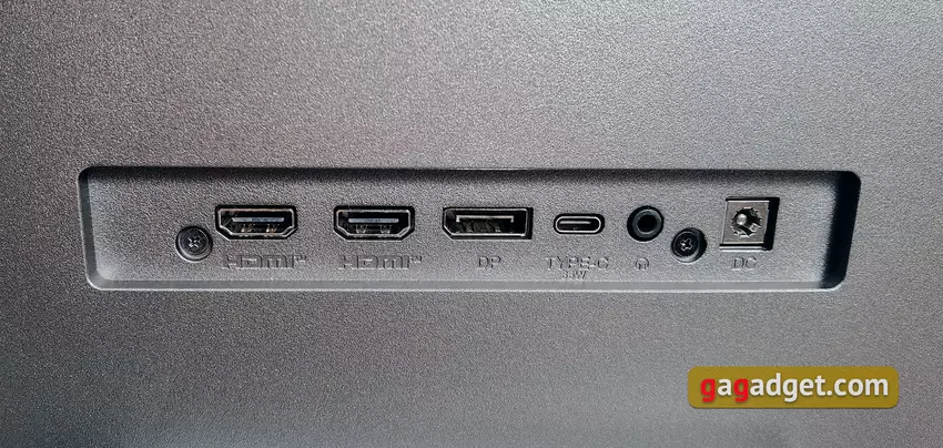 Wszystkie złącza znajdują się w niewielkim zagłębieniu tuż nad podstawką i są skierowane do tyłu. Rozwiązanie to jest bardzo wygodne w przypadku konieczności częstego przełączania kabli: nie ma potrzeby przesuwania lub przechylania monitora.