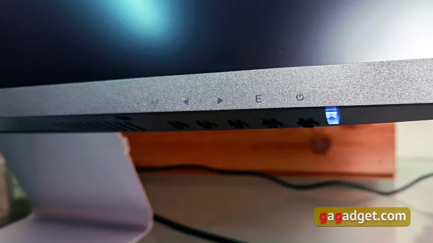 Obok wskaźnika LED znajduje się 5 przycisków do konfiguracji monitora. Menu, przyciski nawigacyjne, potwierdzenie i zasilanie. Joystick byłby wygodniejszy i bardziej intuicyjny, ale to rozwiązanie ma prawo bytu. Do przycisków trzeba się przyzwyczaić: są dość ciasne i monitor lekko się chwieje po ich naciśnięciu.