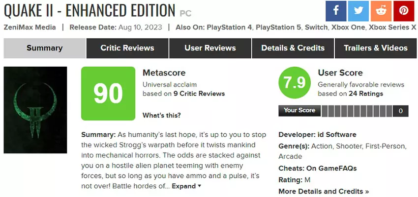 Gracze i krytycy są podekscytowani remasterem Quake 2. Zaktualizowana gra otrzymuje najwyższe oceny na wszystkich platformach