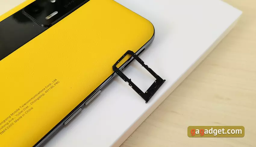 Istnieje również nieco uproszczona wersja smartfona o nazwie realme GT Master Edition. On też przyszedł do nas do recenzji, ale nie ma sensu robić pełnej recenzji: model z zbyt niedokończoną powłoką. I pojawiły się zauważalne problemy z wydajnością, łącznie z fryzami interfejsu i nieodpowiednim aparatem. Wyciąganie jakichkolwiek wniosków byłoby więc całkowicie błędne. Ale powiemy kilka słów o wyglądzie i różnicach pomiędzy modelami. Zewnętrznie smartfony są praktycznie nie do odróżnienia: ekran o podobnej przekątnej z otworem na przedni aparat. Tylna część jest zauważalnie inna. Mieliśmy wersję wykonaną przez japońskiego projektanta Naoto Fukasawę. Tył również wykonany jest ze sztucznej skóry w pięknym szarym kolorze z wytłoczonymi poziomymi paskami. Wygląda bardzo imponująco.