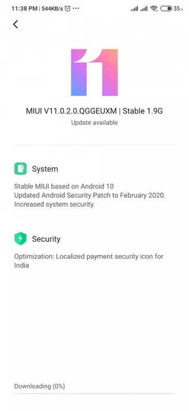 Aktualizacja MIUI 11 v.11.0.2.0.QGGEUXM waży 1,9 GB i zawiera lutową poprawkę bezpieczeństwa.