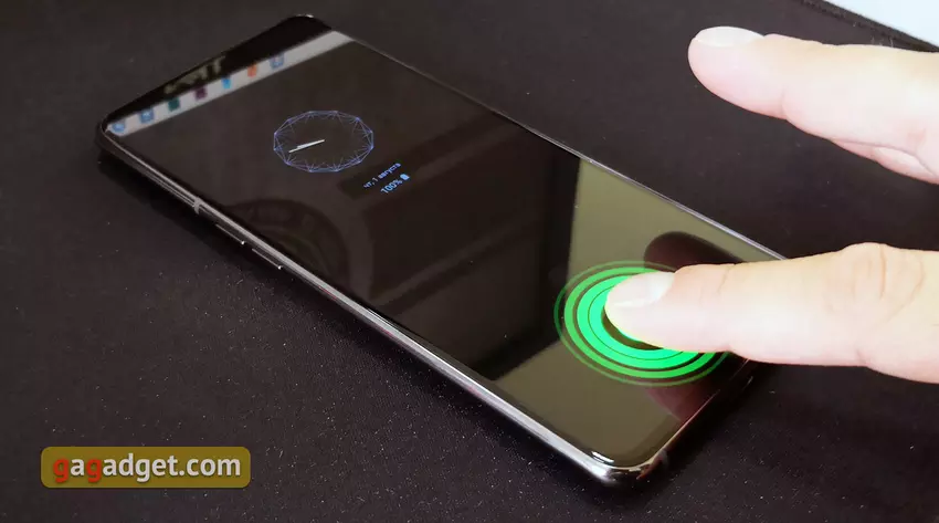 Skaner linii papilarnych znajduje się na ekranie (a dokładniej fizycznie pod nim). W przeciwieństwie do flagowych, nie stosuje się ultradźwięków, ale prostszą optyczną wersję skanera, w której palec jest podświetlany podczas skanowania. Ogólnie działa całkiem dobrze z najnowszym oprogramowaniem. Dokładnie i nieco wolniej niż tradycyjne rozwiązania. Z mokrymi palcami oczywiście nie działa.