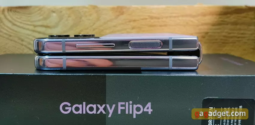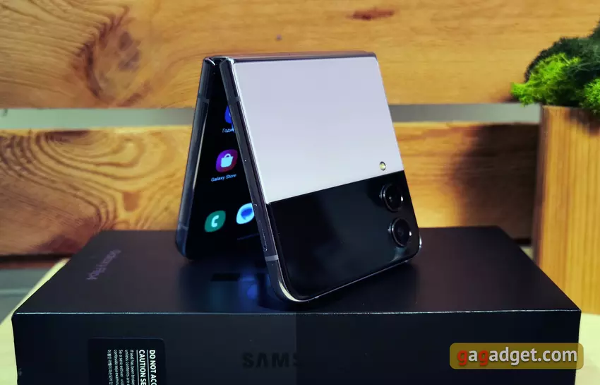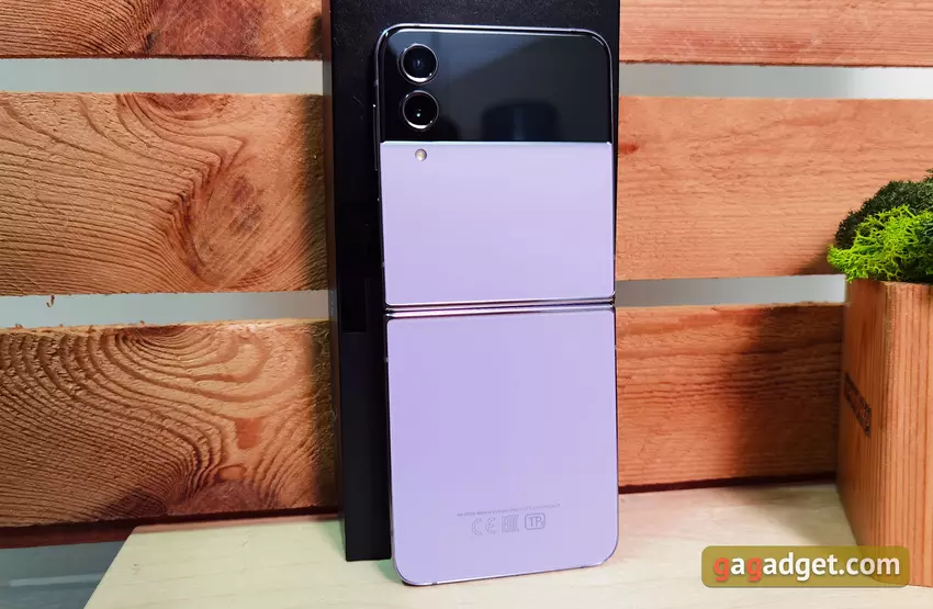 Wszystkie zewnętrzne powierzchnie smartfona chroni szkło Gorilla Glass Victus+, większość powierzchni jest matowa, odciski palców prawie nie zostają. Jedynie obszar z dodatkowym wyświetlaczem i aparatami jest błyszczący. Zeszłoroczny Flip3 miał dość szerokie metalowe wstawki na styku połówek. W Flip4 zostały one wykonane znacznie cieńsze. Jeśli chodzi o wybór kolorów, to jest jeszcze bardziej powściągliwa opcja czarna.