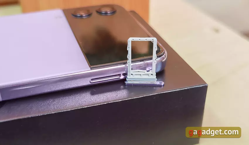 Wszystkie standardowe niezbędne elementy znajdują się w prawie zwykłych miejscach. Na prawej stronie znajduje się podwójny przycisk regulacji głośności, nieco niżej umieszczono przycisk zasilania, który służy również jako skaner linii papilarnych. Przyciski są umieszczone nieco wyżej niż w standardowych smartfonach ze względu na skomplikowaną konstrukcję. Na początku jest to trochę nietypowe, ale wystarczy jeden lub dwa dni, aby się przyzwyczaić. Po lewej stronie znajduje się taca.