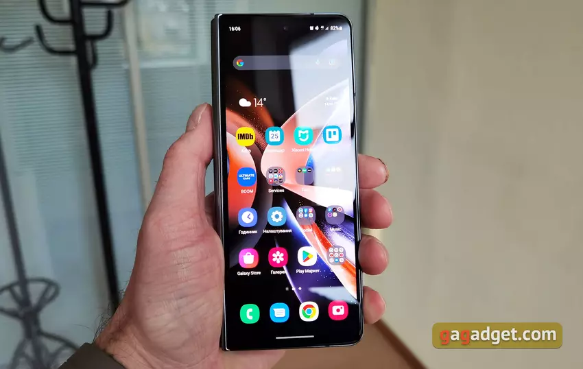 Samsung Galaxy Fold4 działa na systemie Android 12 z powłoką One UI 4.1.1. A dokładniej - Android 12L, który jest zoptymalizowany do pracy z dużymi elastycznymi ekranami. Więcej o funkcjach tej wersji na smartfonach Fold można przeczytać w naszym osobnym materiale . Ogólnie rzecz biorąc, mamy zwykłą powłokę Samsung One UI, która posiada szereg wygodnych funkcji dla dużego, elastycznego wyświetlacza. Czyli z tego co zwykle: są opcje wyświetlania z pulpitami i osobnym menu aplikacji, nawigacja gestami i przyciskami, regulacja rozmiaru siatki i inne. A z ciekawych funkcji warto wyróżnić "tabletową" wersję wyświetlania aplikacji na wewnętrznym ekranie, jak na tabletach. Jest wygodny w komunikatorach, poczcie, podczas pracy z dokumentami. Jak już wyżej napisano, jest pasek zadań przypominający ten z desktopowego OS. Zawiera on najczęściej używane aplikacje, a po prawej stronie - dwie ostatnie. Poprzez proste przeciągnięcie z panelu na ekran można szybko otworzyć aplikację w trybie podzielonego ekranu. okna można zmieniać rozmiar, przesuwać jak się chce. Możliwe jest skonfigurowanie pulpitów osobno dla każdego ekranu, lub ich zduplikowanie. W ustawieniach jest osobna pozycja Labs z funkcjami "eksperymentalnymi". Na przykład wymuszony tryb okna dla aplikacji, które go nie obsługują, oraz panel zginania. W niektórych przypadkach, podczas wyginania, pojawiają się dodatkowe elementy sterujące lub pełniący funkcję touchpad, jak w laptopach.