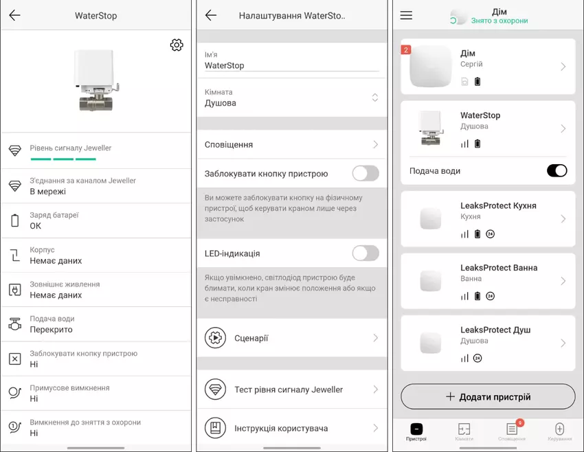 - Wraz z detektorami wycieków, LeaksProtect umożliwia automatyczne odcinanie wody za pomocą scenariuszy Ajax.