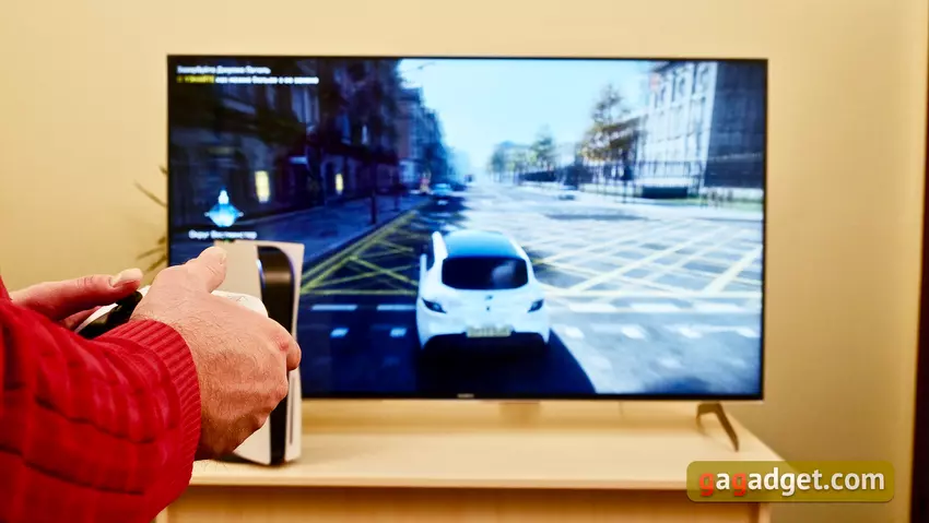 W celu przetestowania konsoli Sony uprzejmie dostarczyło nam jeden ze swoich telewizorów Ready for PS5, a dokładniej model Sony KD-55XH9096. Jest w stanie odtwarzać wideo 4K przy 120 FPS (aktualizacja została już wydana). Chociaż do tej pory jest bardzo niewiele gier obsługujących taką liczbę klatek na sekundę: zaktualizowane Destiny 2, Devil May Cry 5 SE, DIRT 5, Borderlands 3 i Rainbow Six Siege. Telewizor ma specjalny tryb gry BRAVIA, który aktywuje minimalne opóźnienie 7,2 ms, obsługuje S-Force Front Surround, automatyczne wykrywanie i przełączanie w tryb gry, gdy konsola jest podłączona do telewizora. Właściwie obraz na tym telewizorze z PlayStation 5 jest naprawdę świetny. Sam telewizor ma rozdzielczość 4K, podświetlenie Full Array LED (z lokalnym przyciemnianiem i równomiernym podświetleniem) oraz pełen zestaw autorskich technologii Sony: wyświetlacz TRILUMINOS, Live Color, poprawa kontrastu X-tended Dynamic Range oraz obsługa standardów HDR10, HLG i Dolby Vision. Obsługiwany przez platformę Android TV. Jeśli chodzi o dźwięk, to jak na wbudowaną akustykę brzmi bardzo imponująco. Margines wolumenu jest wystarczający.