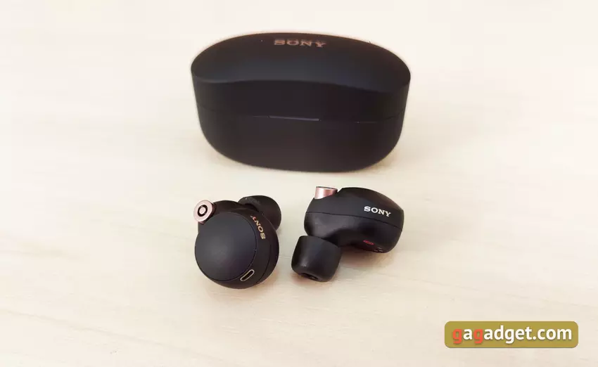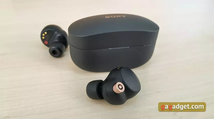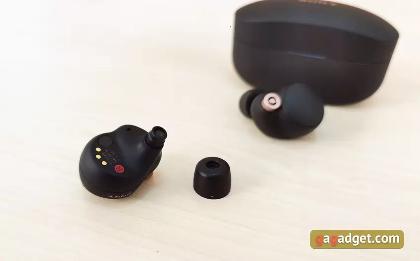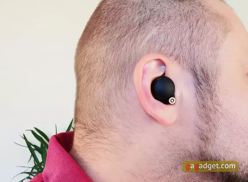 Sony WF-1000XM4 ma dość udany i przemyślany kształt: są doskonale osadzone w uszach, nie wypadają, nie przeszkadzają i nie stwarzają dyskomfort.  Ale przed zakupem warto przymierzyć: dla małych uszu.  Jedynym punktem, o którym warto wspomnieć, są piankowe nasadki. Będziesz musiał się do nich trochę przyzwyczaić, jeśli nie miałeś je wcześniej.  Zapewniają jednak bardzo dobrą pasywną izolację akustyczną.  Z drugiej strony w razie potrzeby można używać załączników innych firm.  Słuchawki praktycznie nie wystają z uszu, co daje nadzieję na wygodne użytkowanie zimą z czapką.  „Lądowanie” w przewodzie słuchowym jest średnio głębokie, całkiem wygodne.