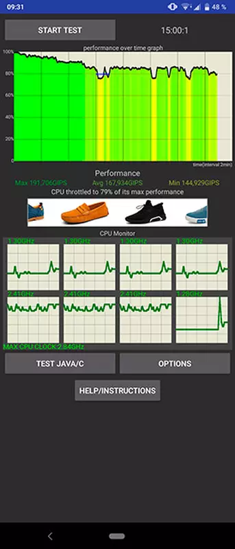 W ujęciu realnym (gry, filmowanie 4K) smartfon praktycznie się nie grzeje. W stress test dławienie nadal obecne, ale w rozsądnych granicach :