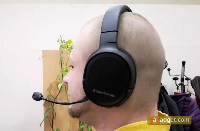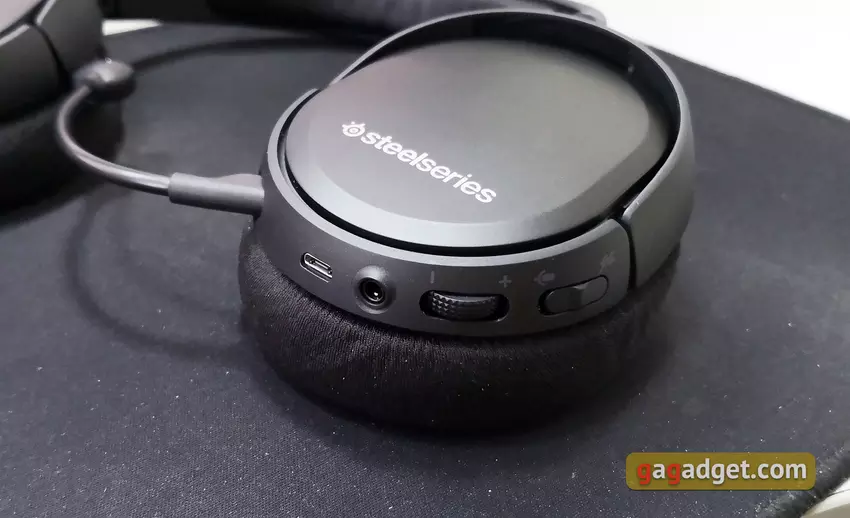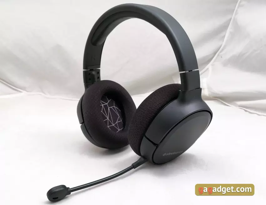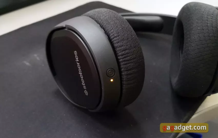 Zakres regulacji rozmiaru pałąka jest dość szeroki, a siła docisku jest optymalna. Zestaw słuchawkowy nie spada, ale i nigdzie zbytnio nie zaciska. Rozmiar miseczek i poduszek na uszy pozwala na całkowite zanurzenie małżowiny usznej. Nie powiem nic o lecie, ale teraz, w listopadzie, w SteelSeries Arctis 1 Wireless, możesz siedzieć w zestawie przez cały dzień pracy prawie nie zdejmując i nie odczuwać dyskomfortu. Uszy nie „przegrzewają się”, nic nie naciska nigdzie i nie przeszkadza. Istnieje podejrzenie, że tapicerka ze sztucznej skóry zapewni lepszą izolację akustyczną, ale tkanina jest zdecydowanie wygodniejsza. Wygoda jest również ułatwiona dzięki niskiej wadze zestawu słuchawkowego: nie moglem znaleźć informacji na oficjalnej stronie internetowej, ale w sieci piszą, że nieco więcej niż 250 g. Jest to bardzo skromne jak na standardy pełnowymiarowego bezprzewodowego zestawu słuchawkowego.