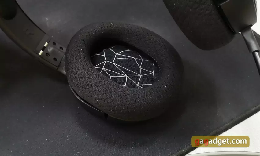 Nauszniki obite są ciekawym, oddychającym materiałem. Przypomina nieco ten stosowany w odzieży sportowej. Wewnątrz znajduje się piankowy wypełniacz z efektem pamięci. Głośniki pokryte są geometryczną tkaniną. Co ciekawe, na międzynarodowej stronie znajduje się ten model z postami Switch, PlayStation i Xbox. Zgodnie z cechami nie ma różnic, tylko obraz w kubkach o różnych kolorach. Niebieski i zielony odpowiednio dla PlayStation i Xbox.