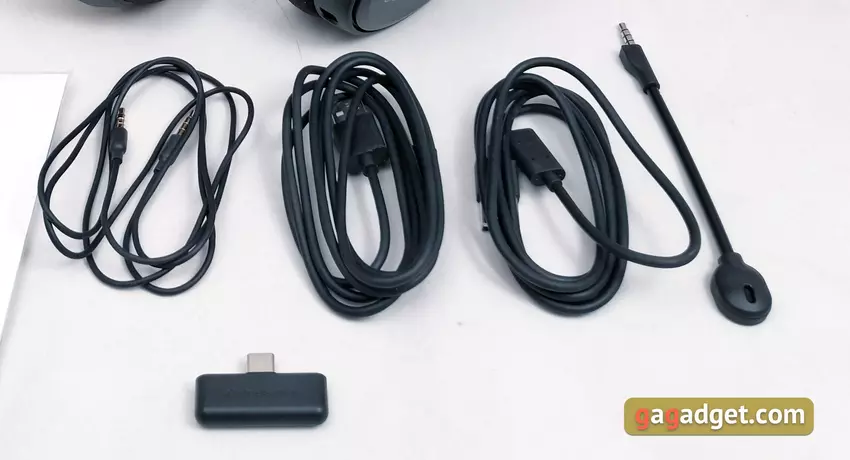 Urządzenia bez typu C, takie jak Sony PlayStation 4 lub nie najnowsze komputery stacjonarne / laptopy, są połączone za pomocą dołączonego kabla adaptera. Podłącza się do portu USB typu A wymaganego urządzenia i jest w nim kompletnym nadajnikiem. Zestaw słuchawkowy „uruchamia się” natychmiast po włączeniu, nie wymaga żadnych dodatkowych manipulacji ani na konsolach, ani na komputerze. W każdym razie nie miałem takich problemów. W przypadku rozładowanej bateriidostarczany jest kabel 3,5 mm i złącze do niego.