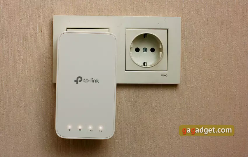 Obejmować przez Wi-Fi obszar do 220 metrów kwadratowych. Oczywiste jest, że rzeczywiste wartości zależą od kształtu pomieszczenia, konfiguracji i materiału ścian. Ale fakt, że przy użyciu zestawu można usunąć się z obszarów o niskiej sile sygnału - to jest dokładnie. Rozjaśnijmy raz jeszcze dla jasności. Router w tym zestawie - to jest główne urządzenie. Dystrybuuje internet, a wzmacniacz podnosi go i transferuje, gdzie nie dociera sygnał z routera. Co więcej, sieć jest jedna, z jedną nazwą i hasłem. Przełączanie (roaming) między urządzeniami jest niezauważony przez ciebie, to wszystko wygląda jak jedna wielka sieć. Nawiasem mówiąc, ona jest również dwuzakresową, nie trzeba myśleć o częstotliwości, i 2,4, i 5 GHz są obsługiwane i są automatycznie wybierane w zależności od urządzenia. Nie mam żadnych skarg na szybkość połączenia.