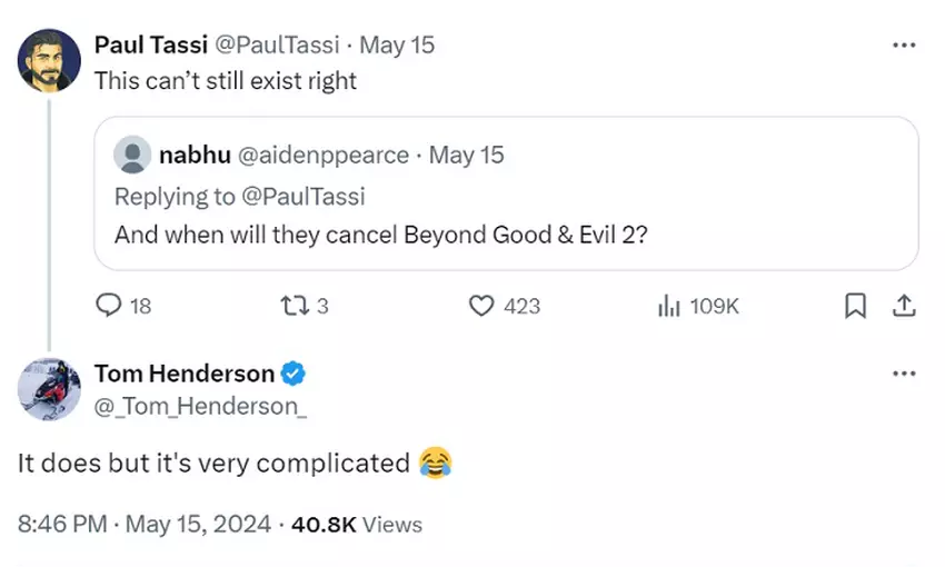 Nie wiemy, czy to dobra, czy zła wiadomość, ale na pytanie Toma Hendersona, czy Beyond Good & Evil 2 jest nadal w fazie rozwoju, czy też został już anulowany, słynny insider odpowiedział: "Gra akcji jest nadal w fazie rozwoju, ale sytuacja jest skomplikowana".