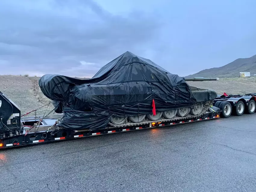 Czołg stał przykryty plandeką na pilotażowej stacji paliw. Jedna z etykiet wskazywała, że T-72 był transportowany z National Automotive Test Center w Nevadzie do National Ground Intelligence Center w Aberdeen Proving Ground w Maryland.