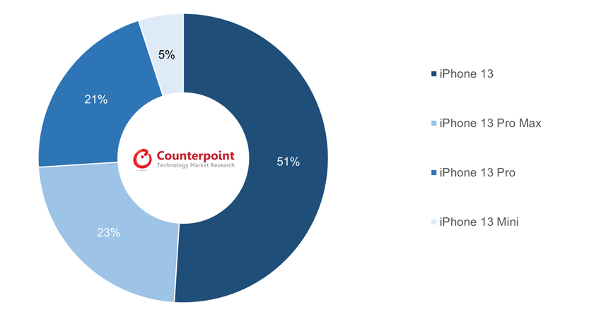Jedynie wersja mini nie jest poszukiwana w Chinach, której udział w strukturze sprzedaży iPhone'a 13 wyniósł zaledwie 5%. Ponad połowa sprzedaży wszystkich smartfonów Apple najnowszej generacji w Chinach pochodziła ze zwykłego iPhone'a 13. Udziały iPhone'a 13 Pro i iPhone'a 13 Pro Max wynoszą odpowiednio 21% i 23%.