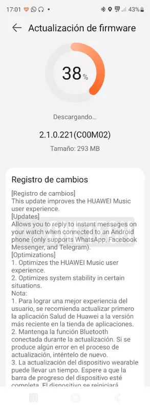Firmware został wydany z numerem kompilacji 2.1.0.221 i waży około 300 MB. Do nowej wersji oprogramowania wprowadzono wiele przydatnych zmian. Na przykład użytkownicy zegarków mogą teraz regulować głośność multimediów sparowanego urządzenia za pomocą przycisku obrotowego gadżetu. Zegarek posiada również szybkie odpowiedzi na wiadomości z krótkimi frazami i emotikonami. Funkcja współpracuje z tak popularnymi komunikatorami internetowymi, jak WhatsApp, Facebook Messenger i Telegram. Lista zmian w oprogramowaniu wspomina również o optymalizacji interfejsu aplikacji Huawei Music.