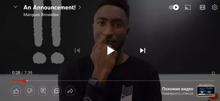 Odtwarzacz stał się bardziej funkcjonalny. Na przykład użytkownicy mogą teraz polubić/nie lubić wideo bez wychodzenia z trybu pełnoekranowego. Zaktualizowana wersja otrzymała również przyciski „Udostępnij” i „Dodaj do ulubionych”. Ponadto w lewym rogu pojawił się „stos” z podobnymi filmami.