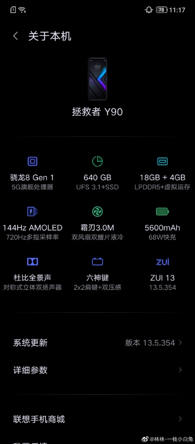 Dyrektor Produktu Lenovo Legion Lin Lin w przeddzień ogłoszenia smartfona do gier Legion Y90 opublikował zrzut ekranu ze szczegółową specyfikacją nowości.